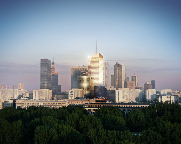 2016: Panorama Warszawy z wizualizacją biurowca Q22.