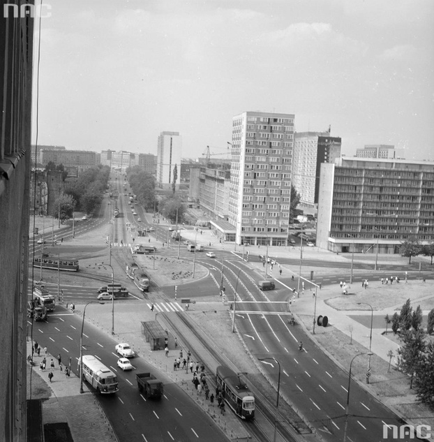 Panorama w kierunku północnym - widoczna ulica Marchlewskiego od Ronda ONZ do skrzyżowania z ul. Elektoralną. Źródło: Archiwum Fotograficzne Grażyny Rutowskiej.